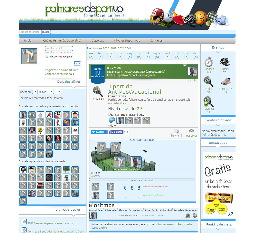 Página web personalizada para conectar a deportistas de diversas disciplinas y poder llevar un seguimiento de sus entrenamientos.