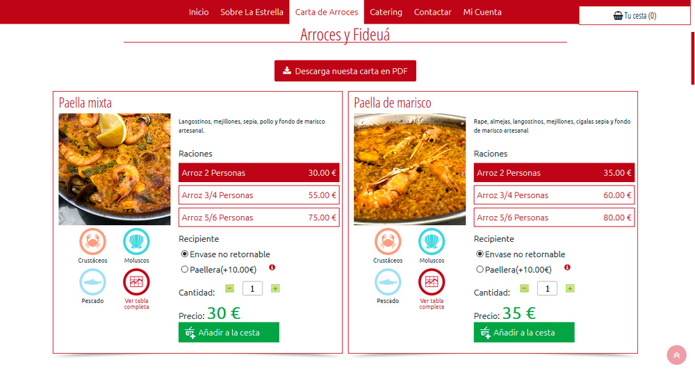 Arrocería La Estrella - Paellas y fideguá a domicilio en Madrid.